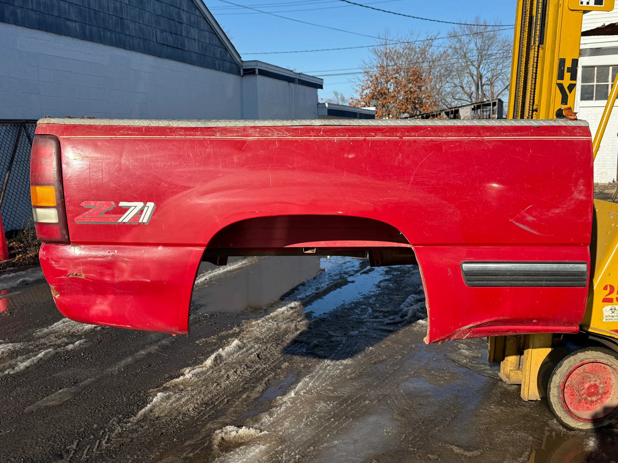 99-06 chevy/gmc southern ROT FREE 6.6ft short bed. It was just hauled up from down south. It is rock solid. It has no rust or rot issues. The rails are rock solid and no bubbles on arches like most. It is off a used truck so has some scratches, pings dings and minor dents price reflects. It had the factory flares removed to show no rot issues can be used with or without the flares.